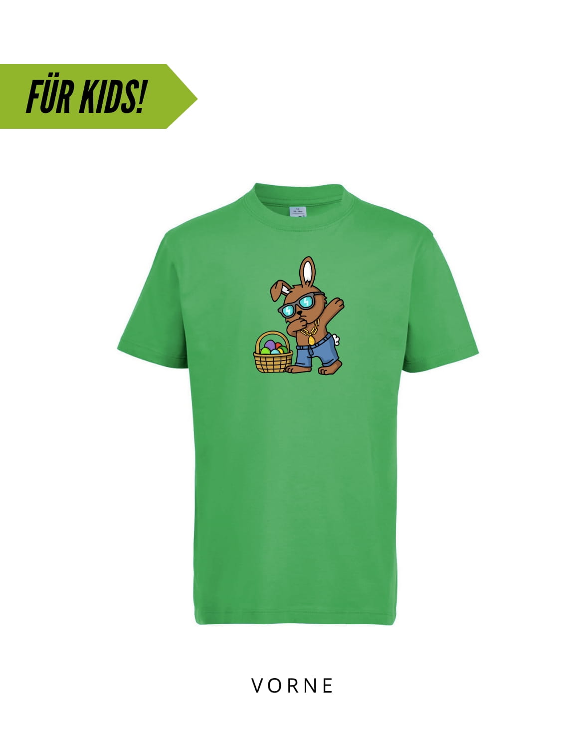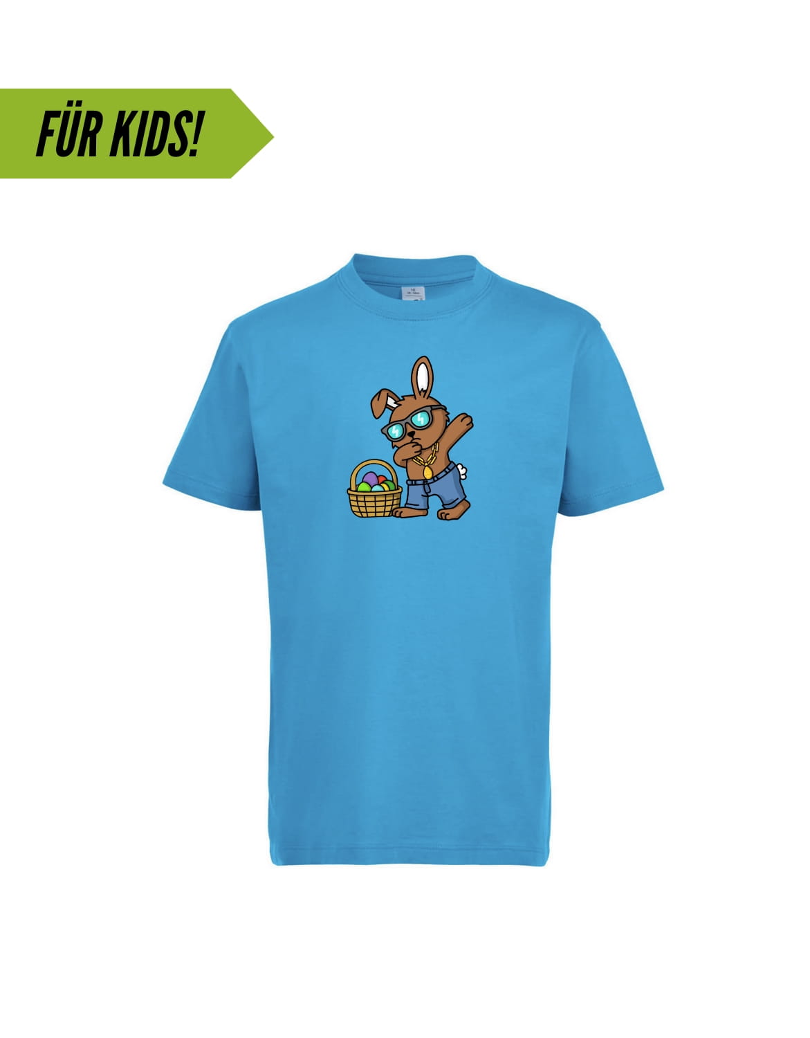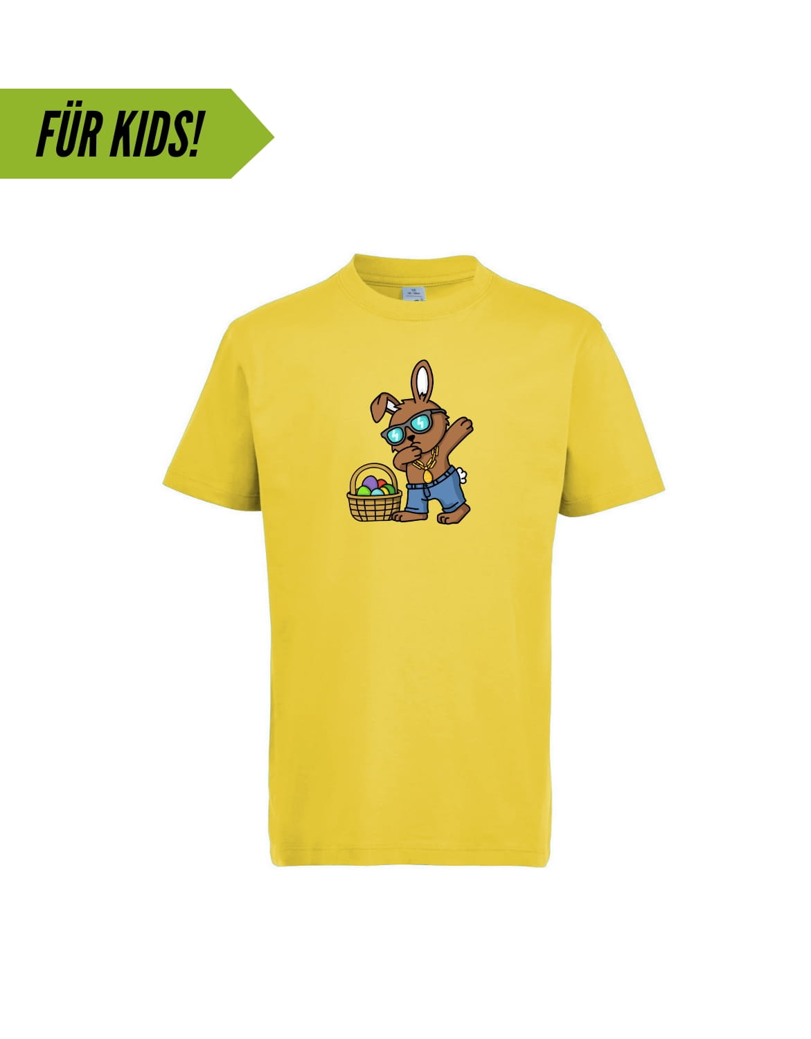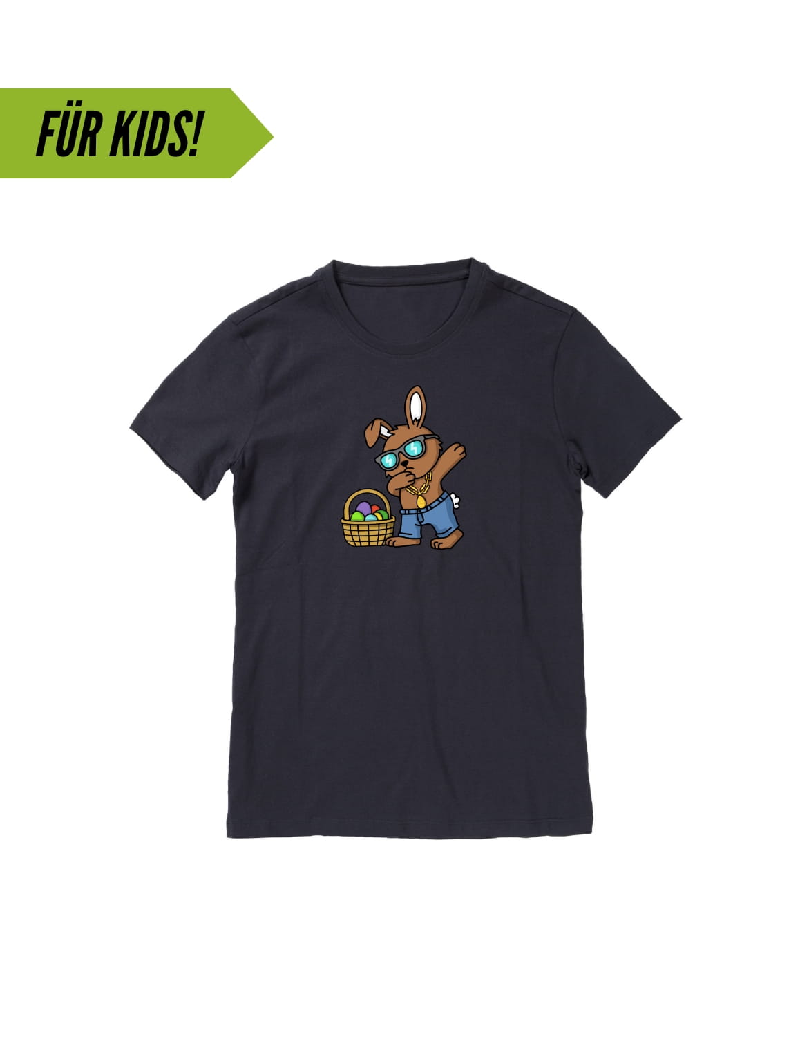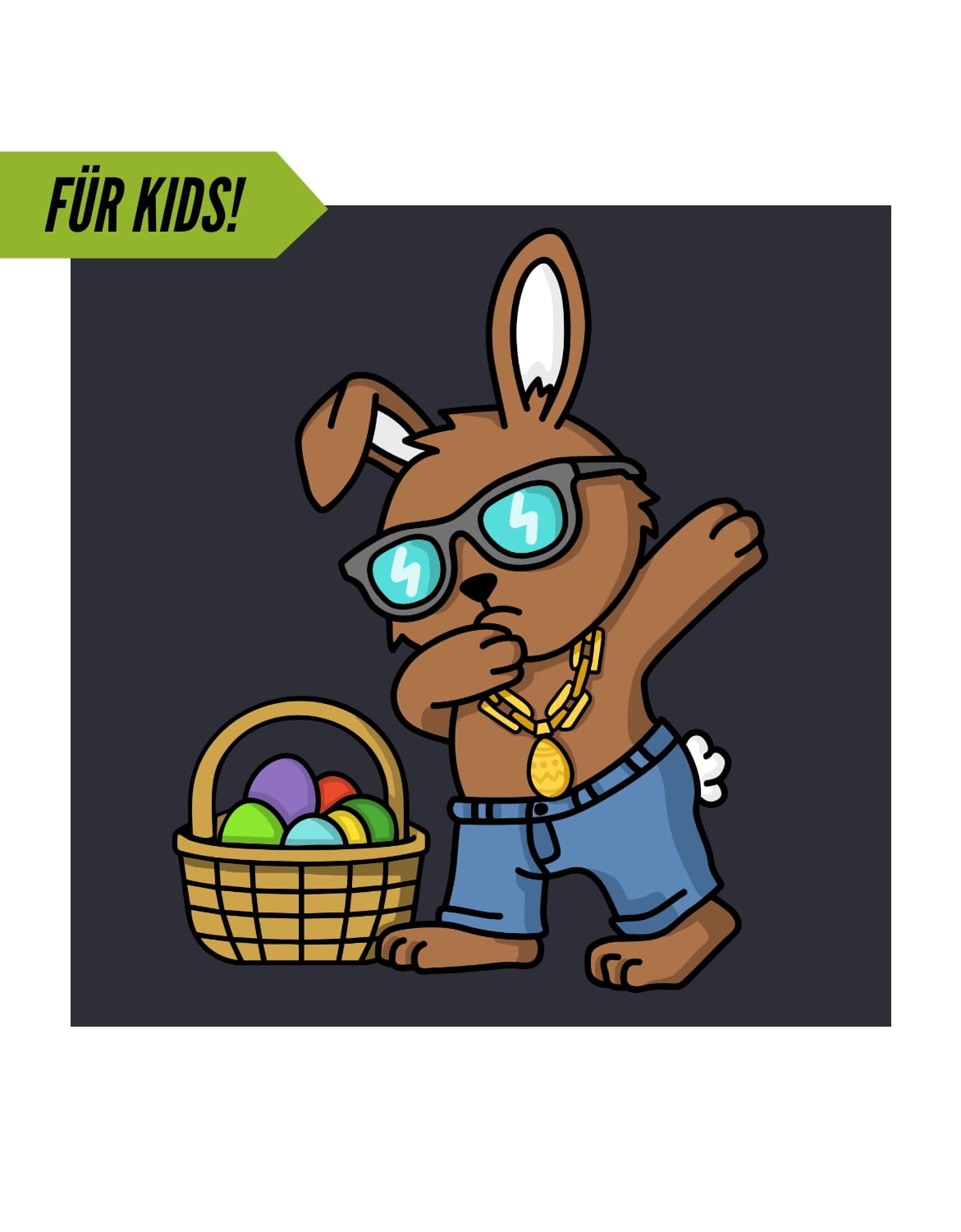 Der Osterhase weiß, wie man cool aussieht! Egal ob drüber oder drunter, mit diesem Motiv ist Dein Mini-me immer gut gekleidet.